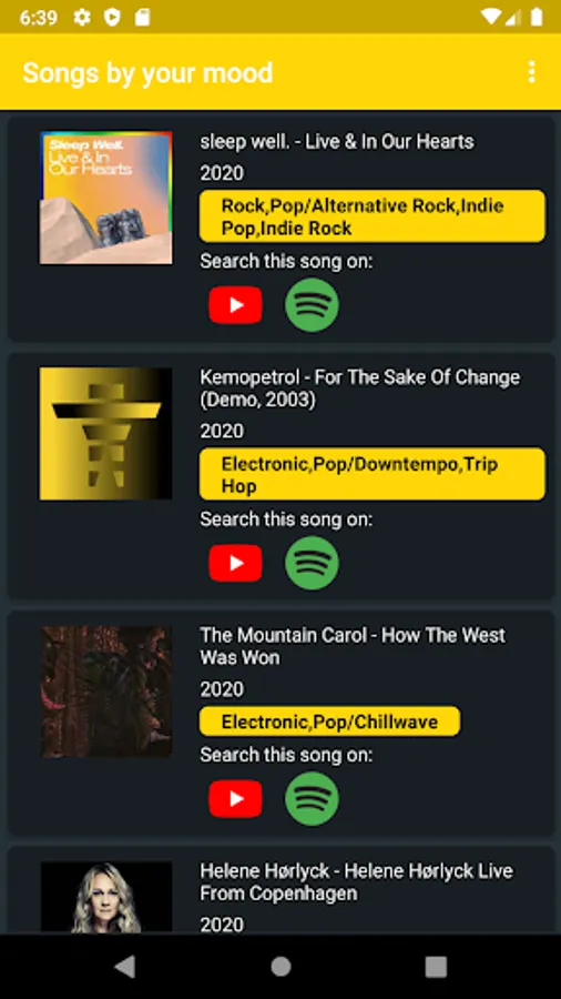 Listen to music based on your current mood. The application will analyze your recorded voice and present you the most suitable songs. The setting options allow you to custimize app up to your liking. What is more, you may also choose your mood manually by using set of emojis. The app interacts with YouTube and Spotify.