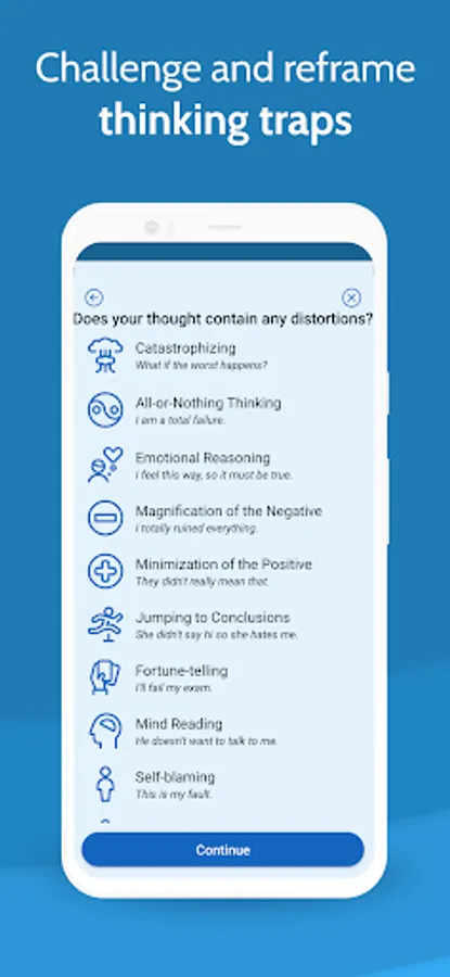 Clarity's digital CBT thought record helps you identify and challenge unhelpful thought patterns (AKA cognitive distortions) to create lasting, positive changes in your mental health.