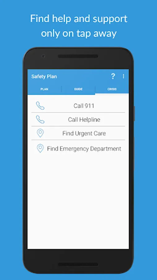 If following your safety plan is not enough to stem a suicidal crisis, then this app also contains an easy-to-access list of emergency resources so that help is just a tap away.