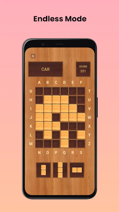 * Play woody puzzle block games by filling a row or column to clear blocks from the board and gain the corresponding letter.