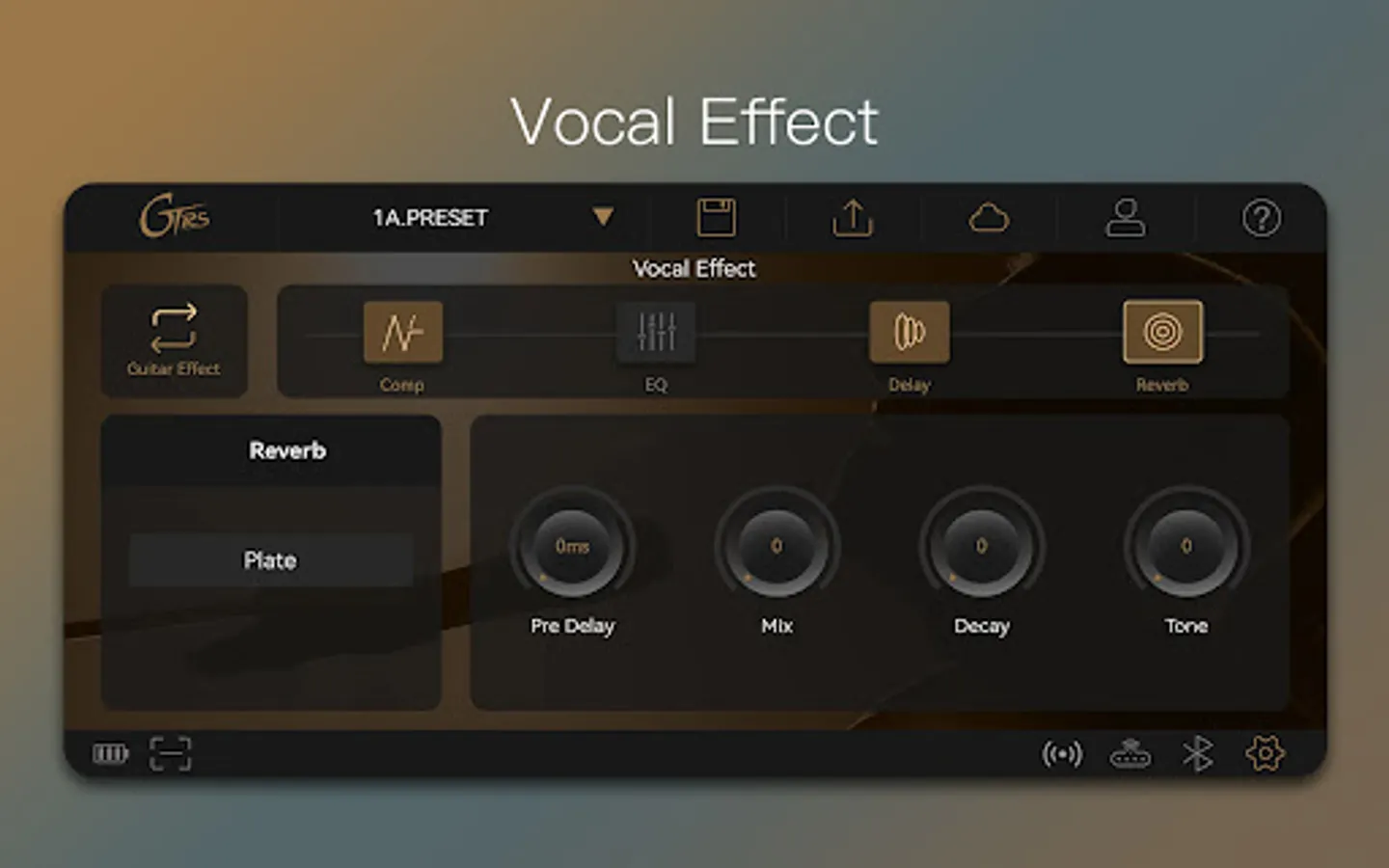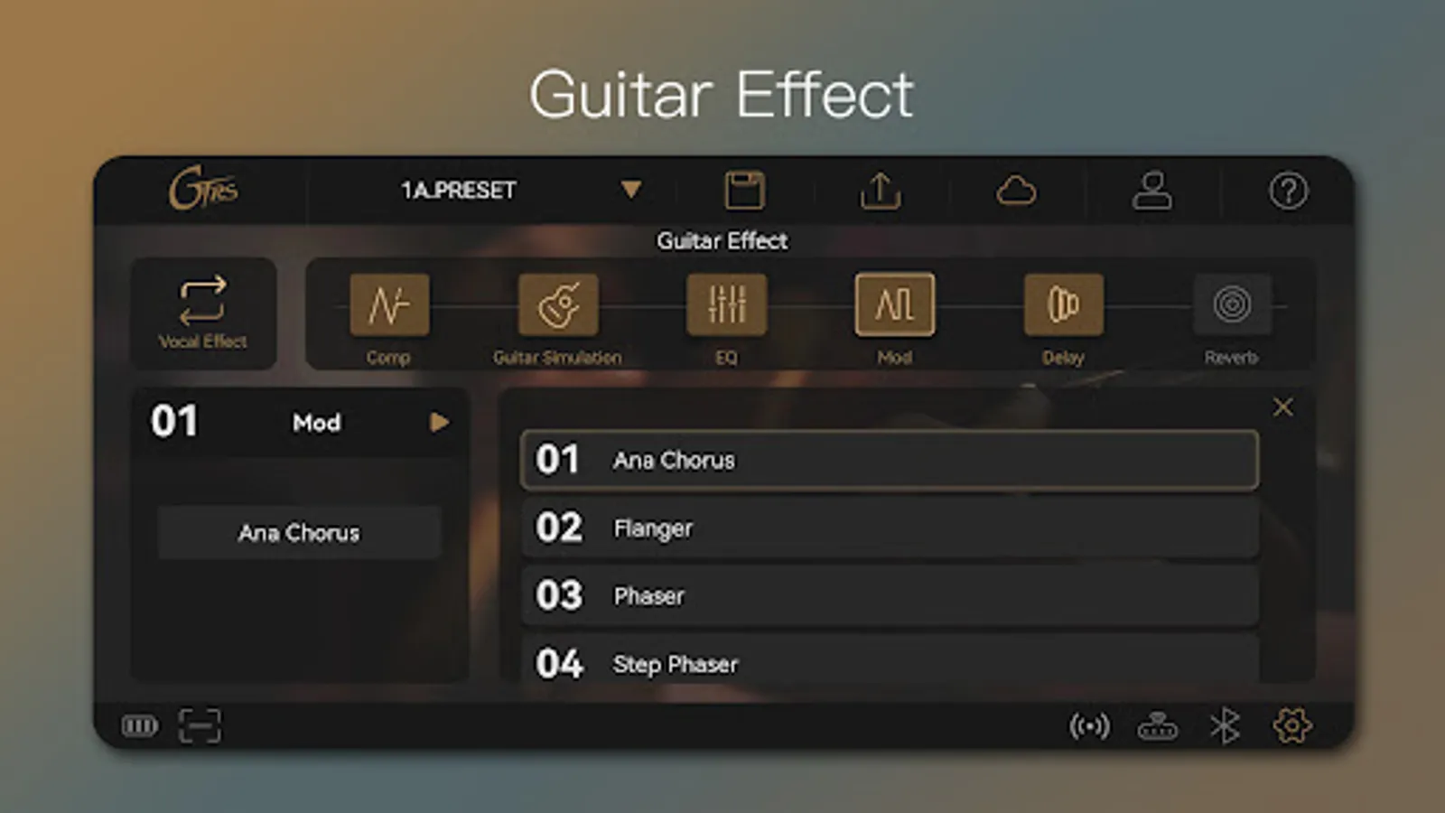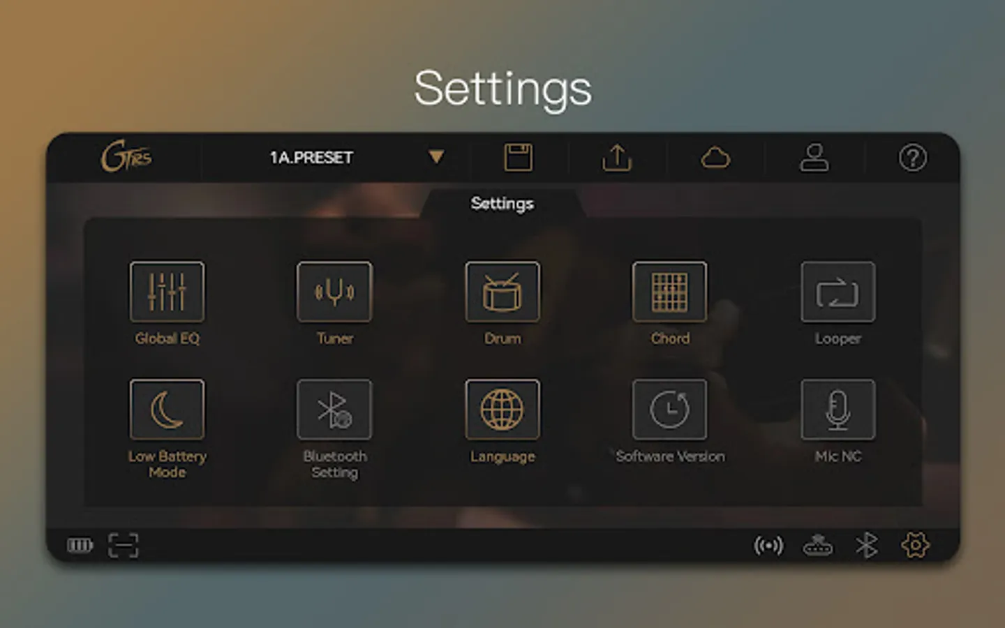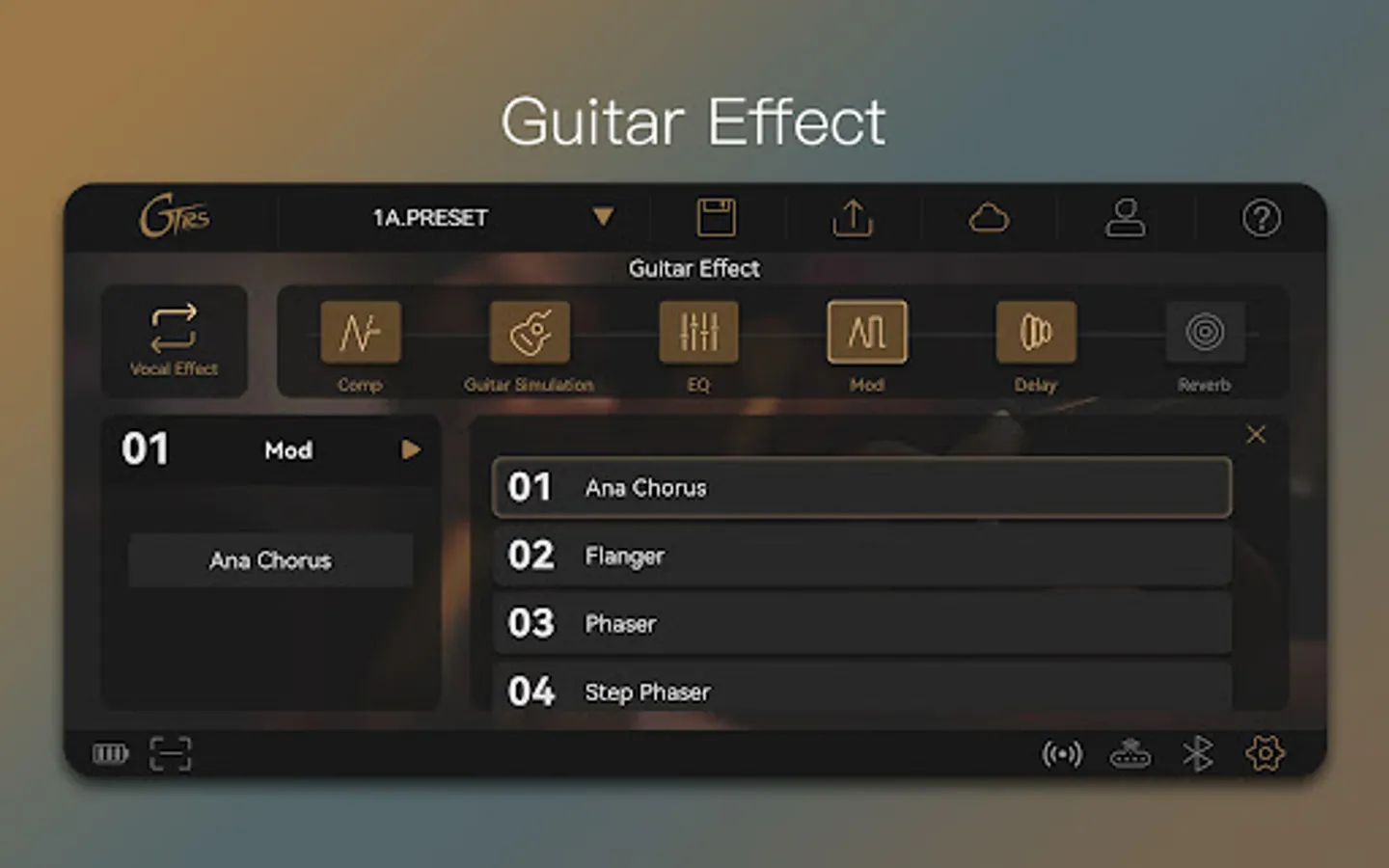 GTRS Coustic APP is a mobile control software used with GTRS acoustic guitar. Through the App, users can edit effects, adjust parameter settings, enable auxiliary tools for practice and access the Cloud function.