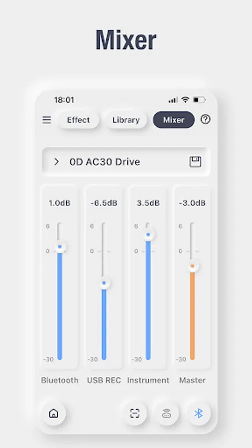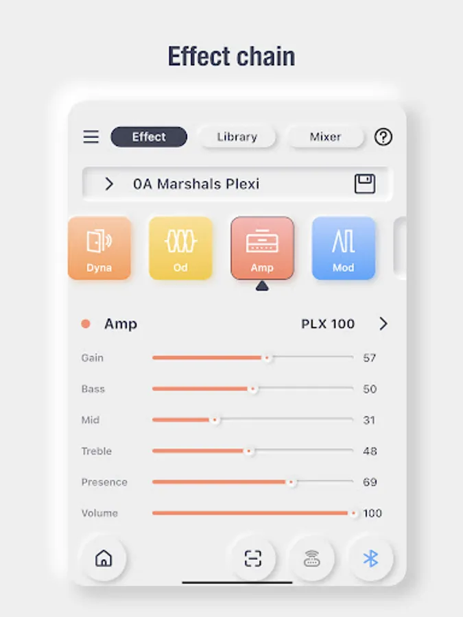 1. The stable and low-latency Bluetooth solution realizes the communication with the Mooer iAMP speaker hardware system, and displays the working status of the Mooer iAMP speaker in real time. 2. It can realize stable and fast switching control effect model. 3. Very intuitive operation mode and novice user-friendly shortcut guidance. 4. Comes with tuner, metronome, drum machine practice tool software. 5. The sharing service of cloud platform tone upload/download can be realized through software.