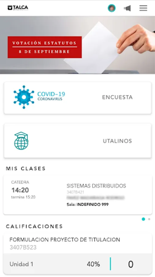 Utalca Mobile App is the institutional mobile application of the University of Talca, whose purpose is to provide a tool that improves communication and accessibility of your institutional data to the entire university community: students, teachers and officials. It is integrated with the data from the Curriculum Management System and Educandus, so that students and teachers can see their situation and academic resources at any time and in real time. Among the possibilities to highlight are: viewing grades, announcements, credentials, events, course files, assignments, campus, contact information, sending messages and receiving notifications.
