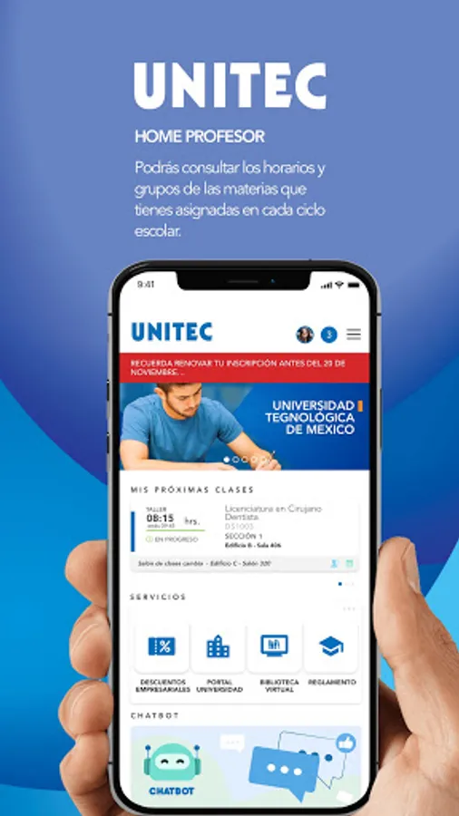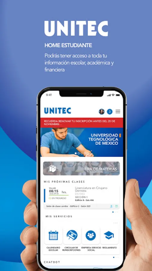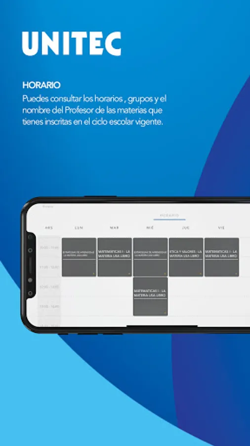 mobile solution that will allow students enrolled in any of the curricula offered by UNITEC, consult all their school and academic information; as well as news and events of the University.