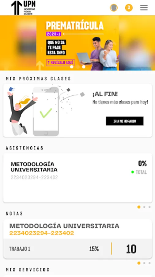 Here you will find your schedules, grades, information on each of your courses, among others, and you will be able to contact your teachers and classmates through a message.