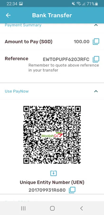 • Pay directly and instantly to a Singapore bank account using the national PayNow network