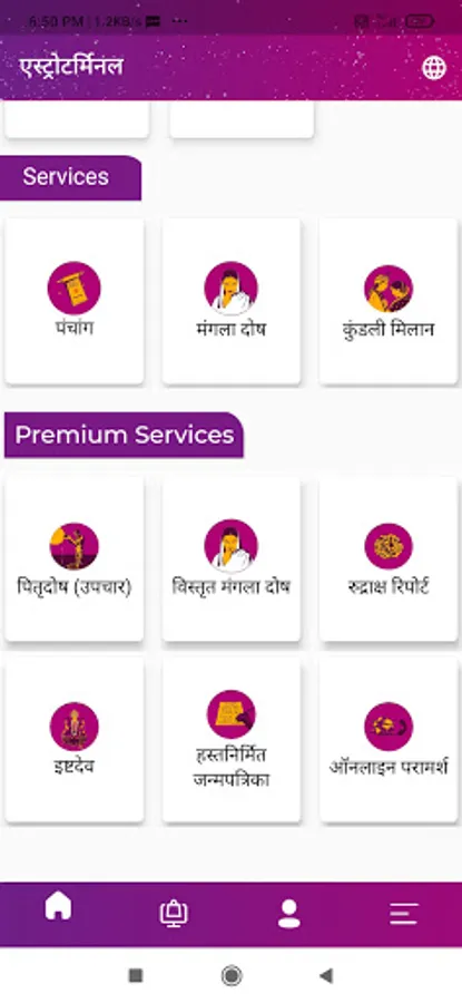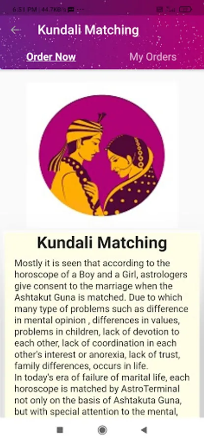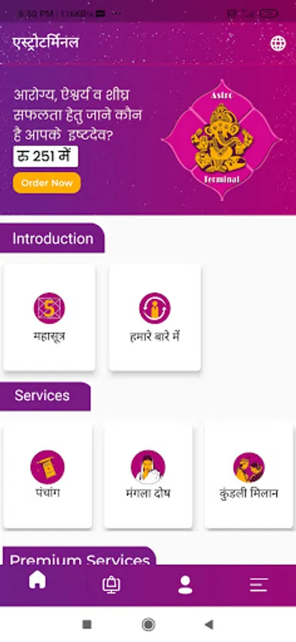 AstroTerminal app provides you all about auspicious and inauspicious yoga of your kundali with existing dosha and most suitable remedies. Suggestions of Gemstone, Mantra, Rudraksha, good and bad timings with daily choghadiya, Daily horoscope, specific Yoga, Vrat and Tyohaar etc on the basis of ancient Vedic astrological methods.