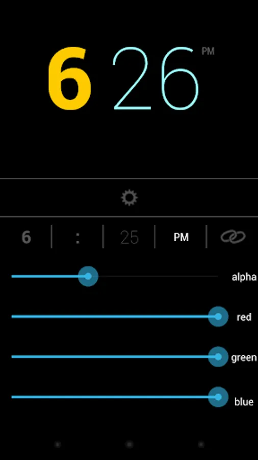 Hours, minutes, the colon separator (:), and am/pm text can all be set to different colors. For example, the clock can be set to only show the hour and minute (one of my favorite settings) by turning the alpha of the colon and am/pm text all the way down.