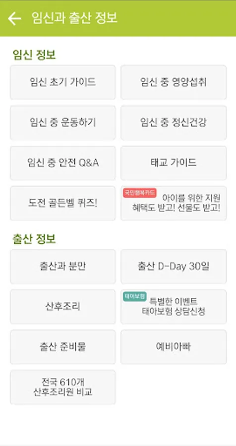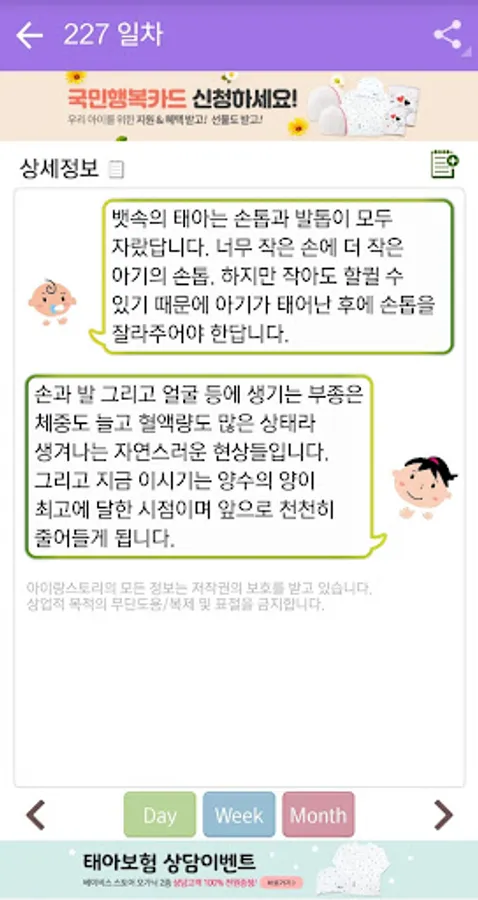 daily / weekly / monthly info about Mommy's status and baby's growth