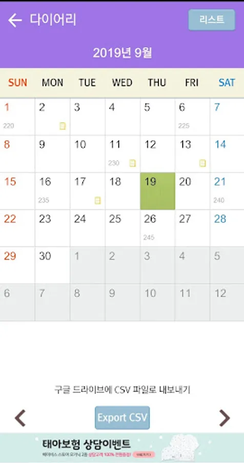 - Diary Notes (Export CSV, weight, specific details such as the diaries were writing history)