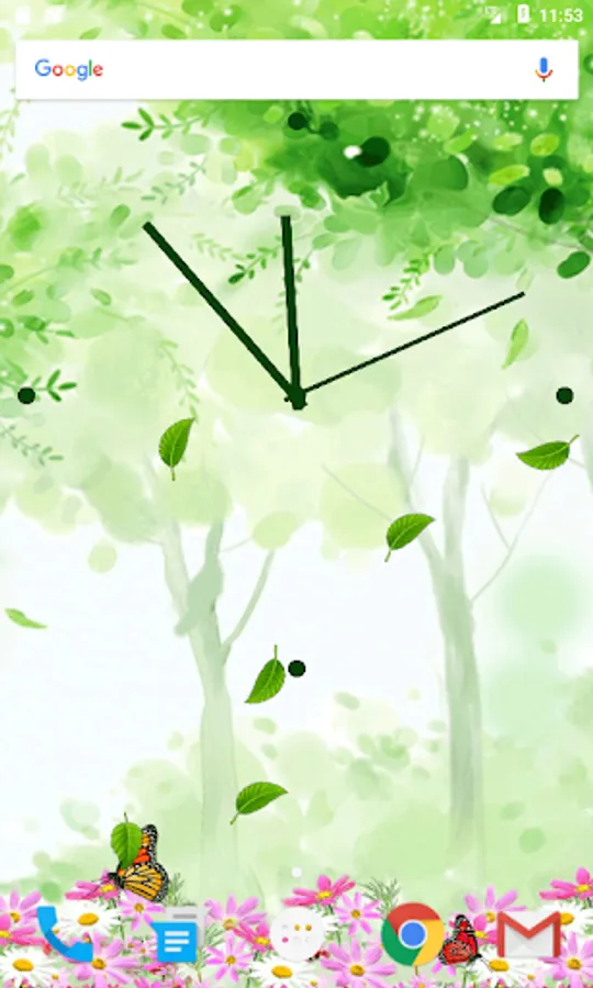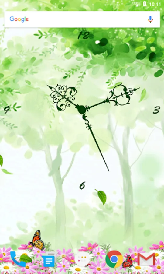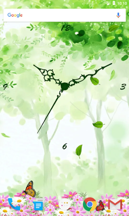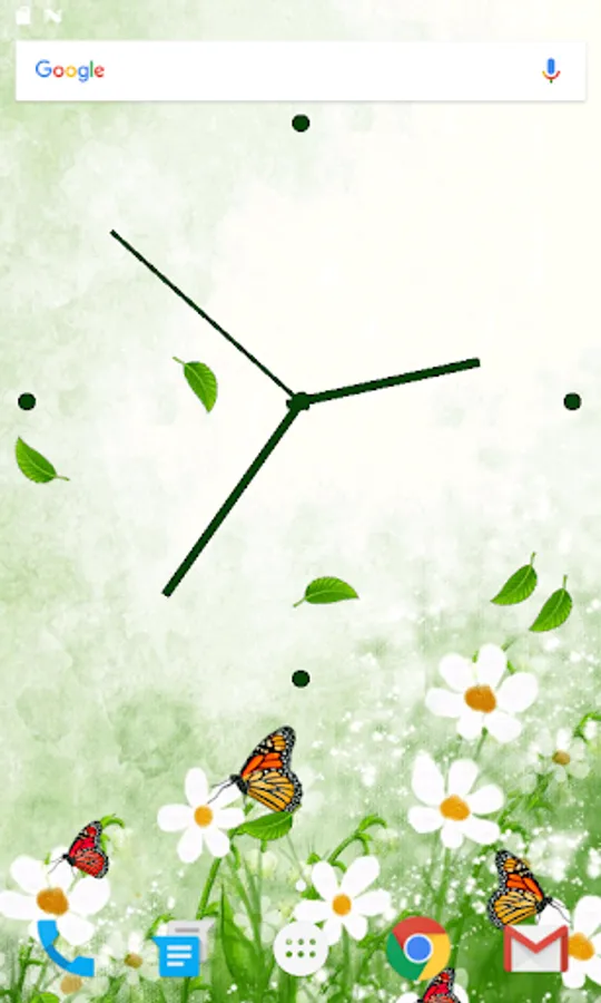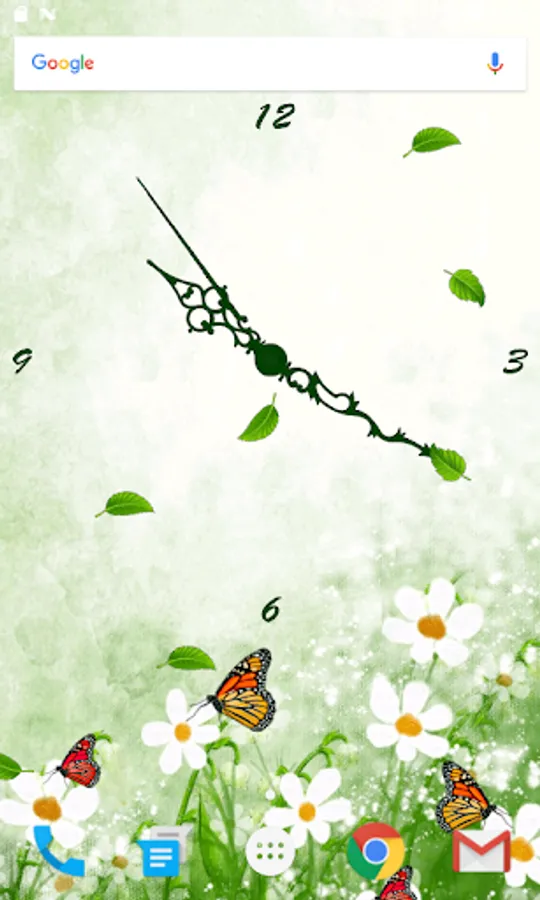 Butterfly Clock Live Wallpaper is a free Live Wallpaper which shows an animated analog clock, with realistic animated butterflies which will make this live wallpaper one of the best clock live wallpapers, this clock live wallpaper has three different clock faces which can be changed by the user, there are several butterflies in this live wallpaper which are animated, this live wallpaper have two backgrounds both are beautiful as well, Butterfly Clock Live Wallpaper shows the real beauty of nature with flowers and falling leaves.