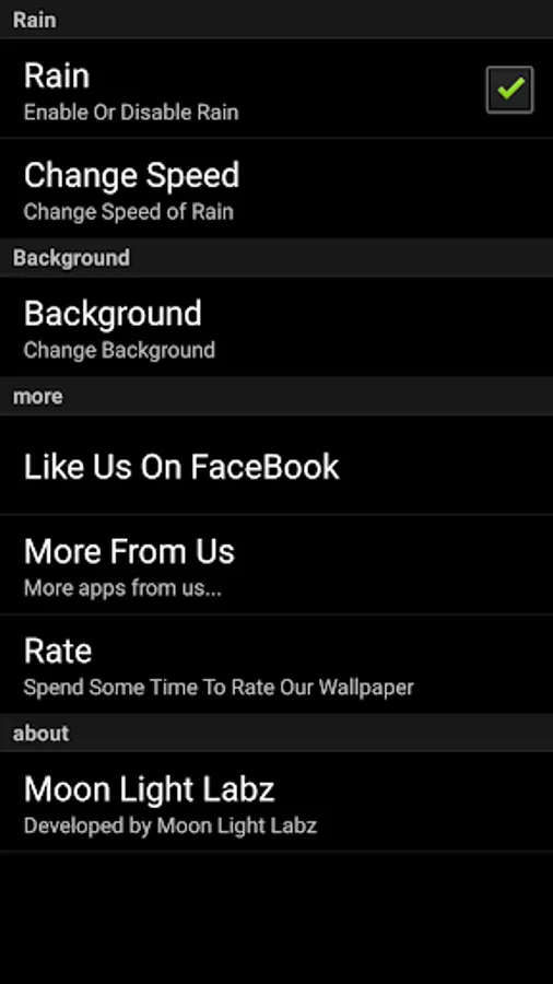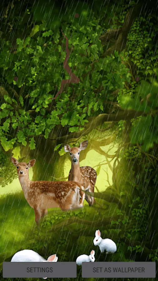 The forest - deer live wallpaper also contains rain effects that could be personalized by the viewers which enhances the liveliness of the forest.