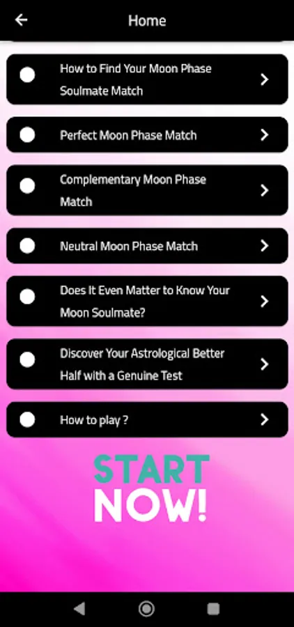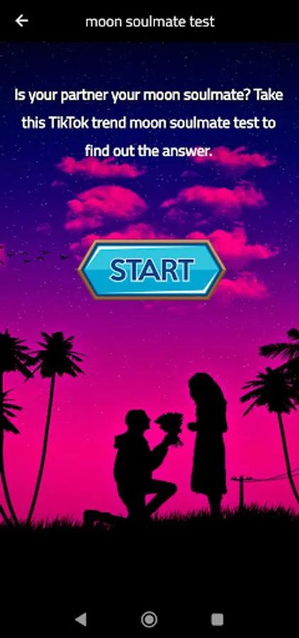 The Moon Soulmate Test is an exciting application designed to explore the mystical bonds between individuals and the moon. Whether you're curious about your soulmate's compatibility or seeking a deeper understanding of your connection to the lunar cycles, this app offers a range of features to help you explore and decode the cosmic energies.