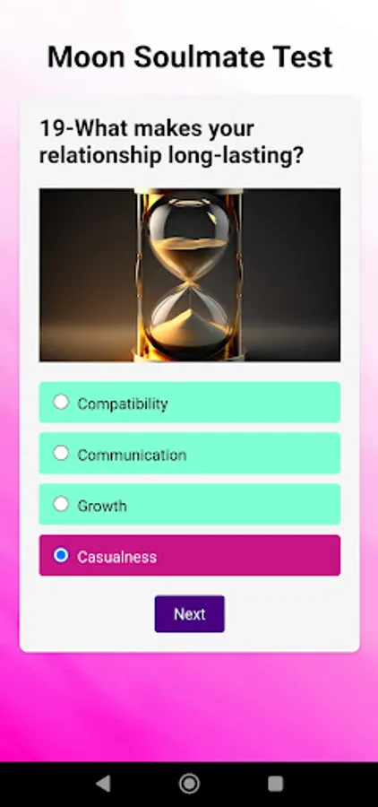 If you have a crush and wish to evaluate the potential of a romantic connection, the Crush the Moon Soulmate Test is a perfect choice. Answer a series of questions about your crush and let the app analyze the compatibility based on the moon's influence.