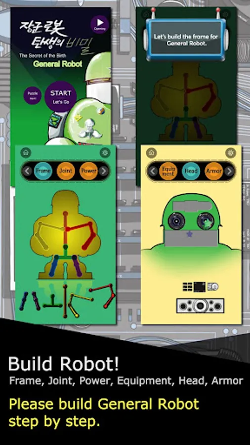 - Frame, power, equipment, armors. Build General Robot step by step!