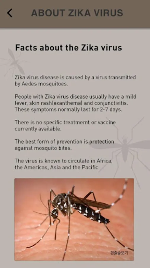 The aedes albopictus (or Asian tiger mosquito) has been spotted in Korea. The old and the children