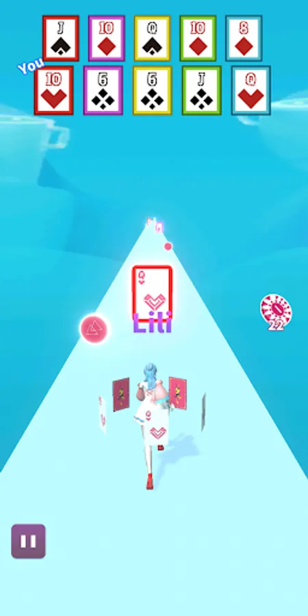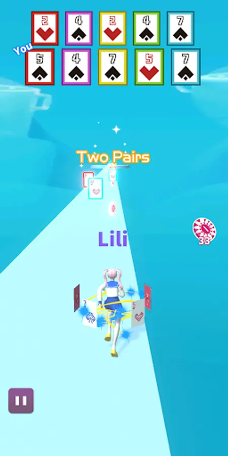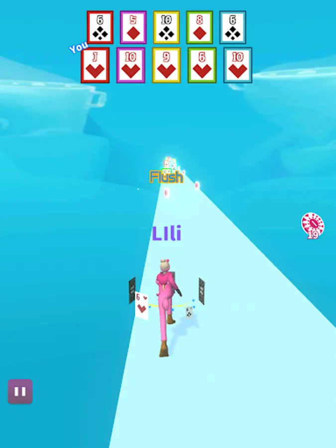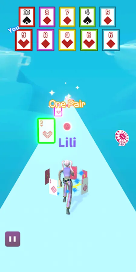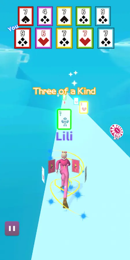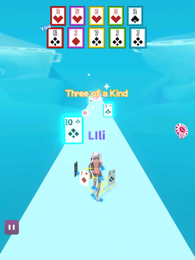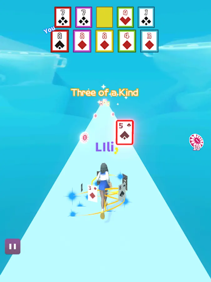 This is a card parkour game. Pick up cards in parkour. One pair, two pair, three of a kind, flush, straight, or even straight flush, everything is possible, try to combine the best cards!