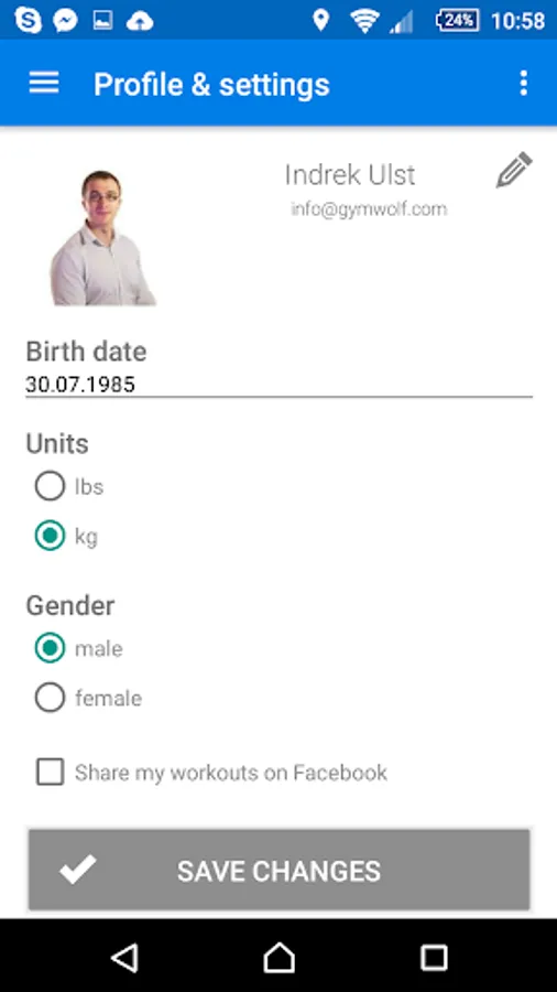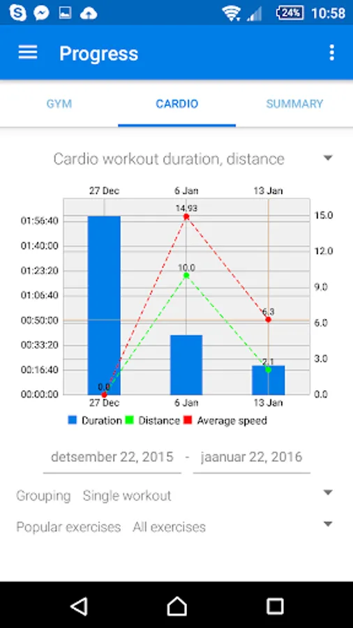 * Track your workouts: both gym and cardio