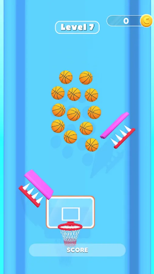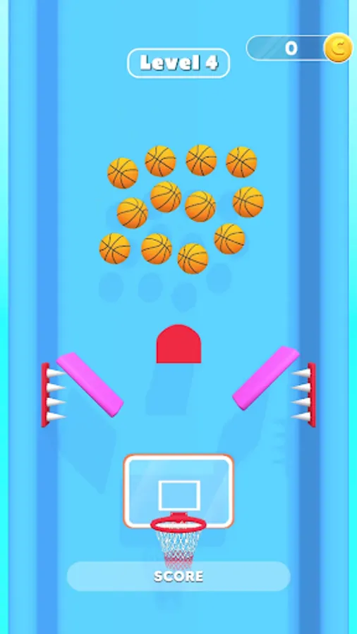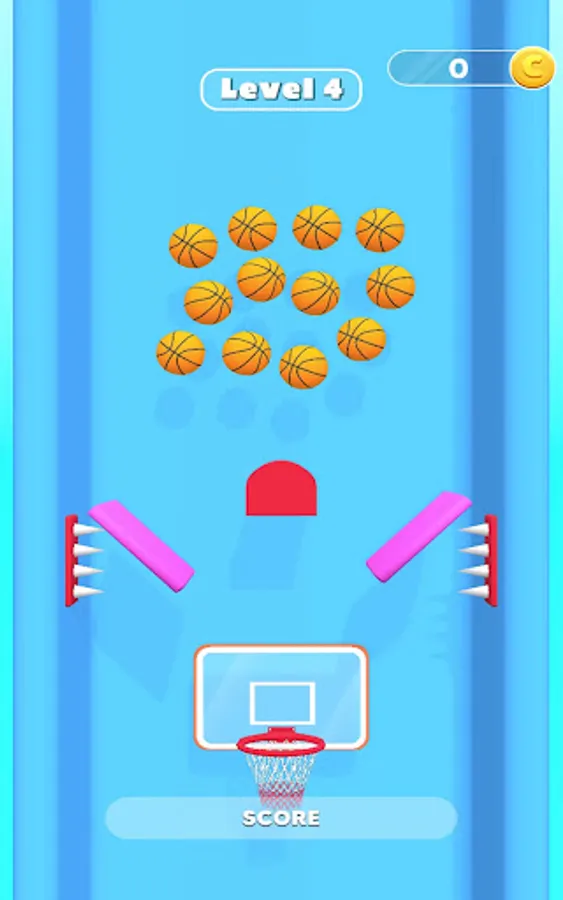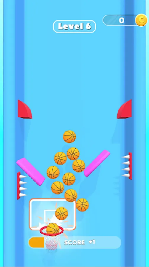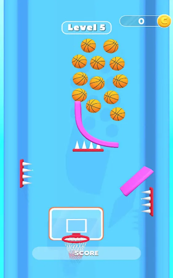 Place objects strategically to make the basketballs go into the hop and avoid losing them!