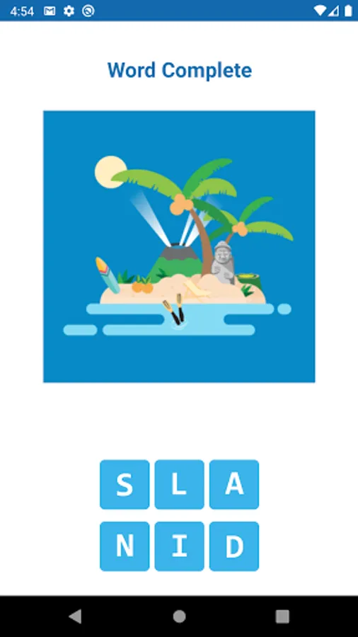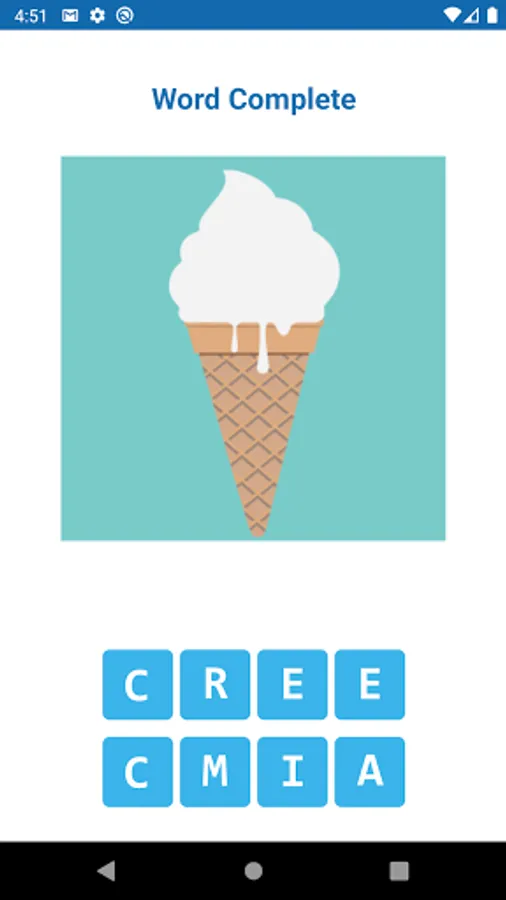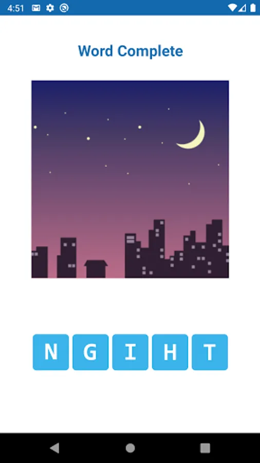 Look at the picture on the screen and press the alphabet button to guess the English word.