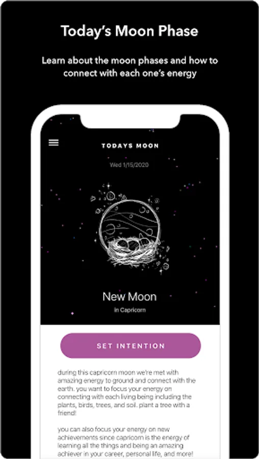 ≫ Today's Moon Phase: Every time you open the app you'll see the current moon phase (in the northern hemisphere) along with a description explaining how to work with that phase's energy.