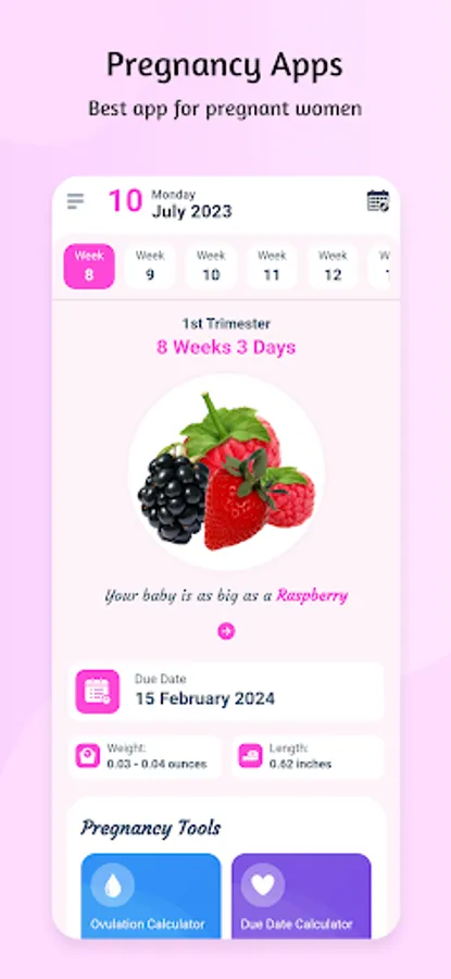 Pregnancy Apps provide features for due date calculator, pregnancy guide, pregnancy dairy, step counter, kick counter, nutrition facts, calorie calculator and BMI calculator.