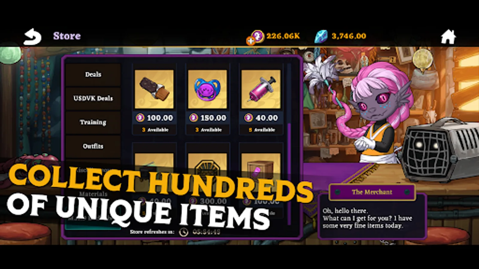 Devikins is a free to play blend of classic JRPG style turn-based combat and character breeding. Seek glory with a Guild or craft weapons, equipment, and skills! Raise your own personal army, and defeat monsters and other players in both PvE Story Mode and the PvP Arena!
