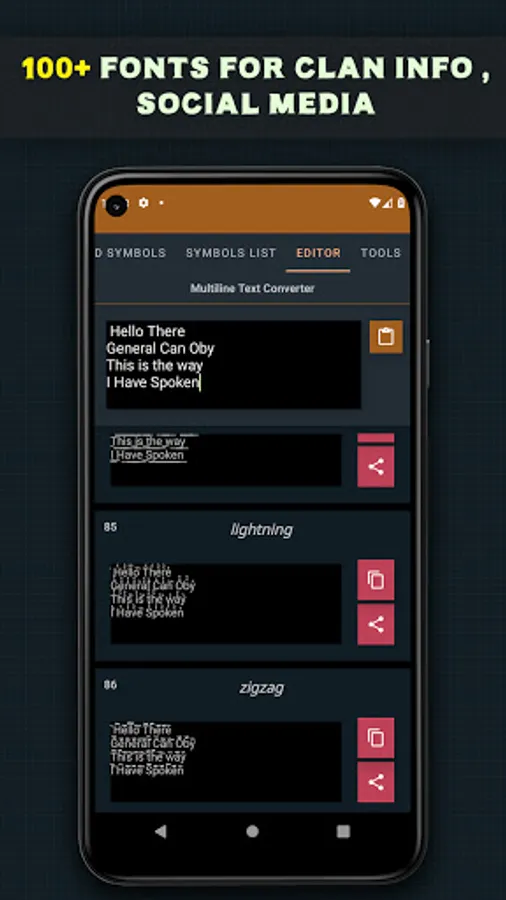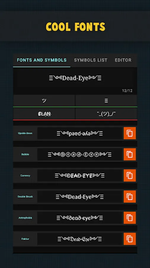Welcome platers to FF nickname generator where you can make cool nicknames using 250+ unique symbols, 100+ text fonts and only on this app list of 60,000+ alphabets, symbols and glyphs. Now create epic nickname using this font application and don’t forget to share your name with friends.