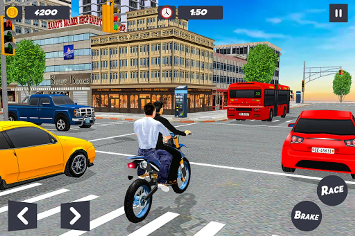 • Modern bike taxi graphics for amazing motorbike taxi driver game.