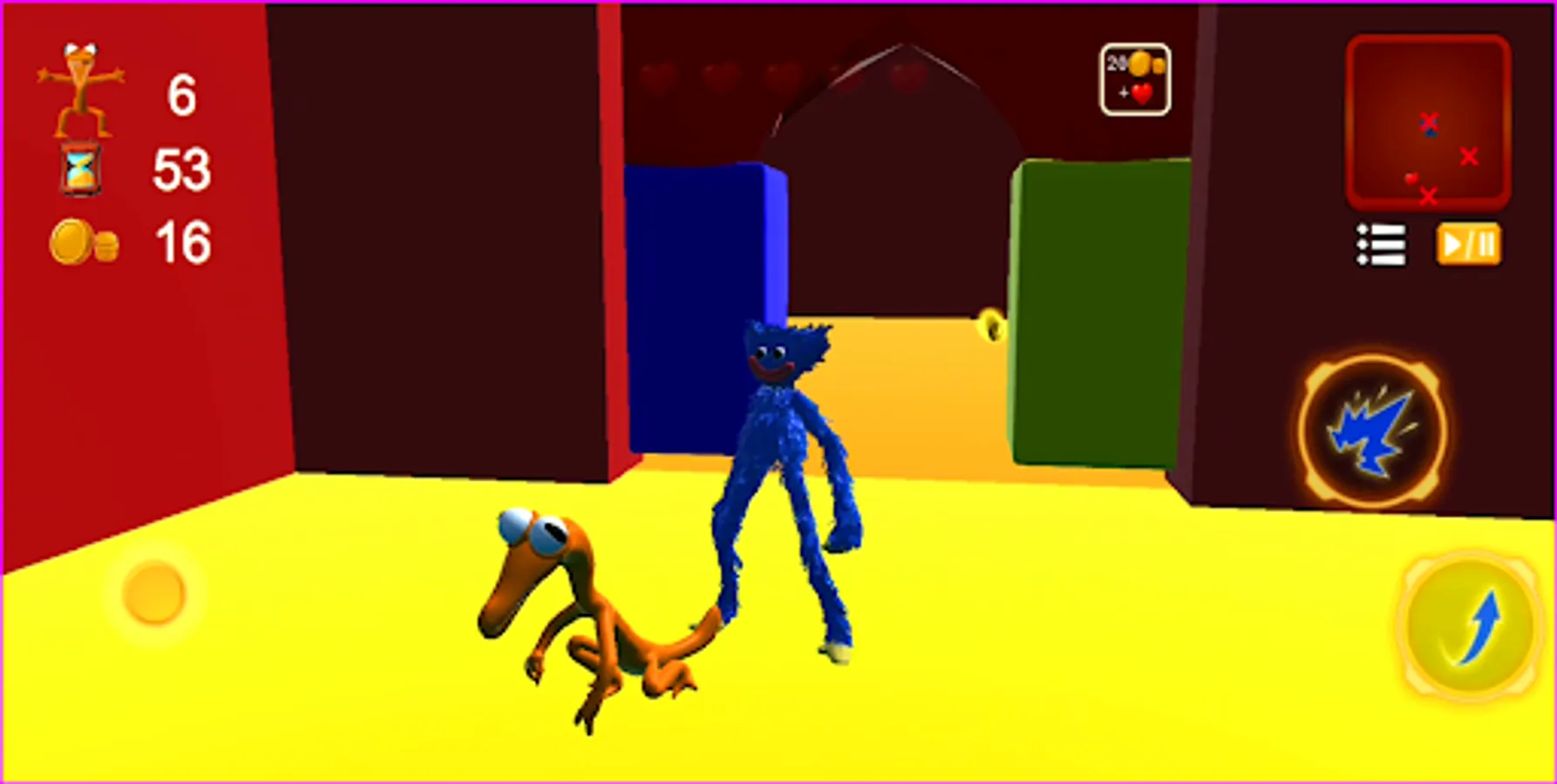 - Huggy Wuggy Playtime escape from rainbow friends in six levels in horror and scary rooms