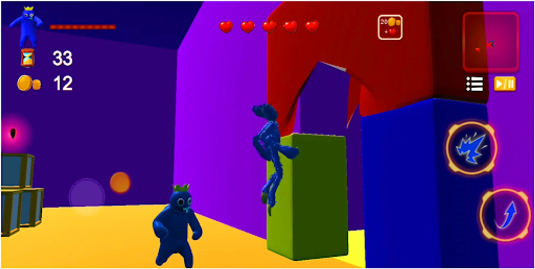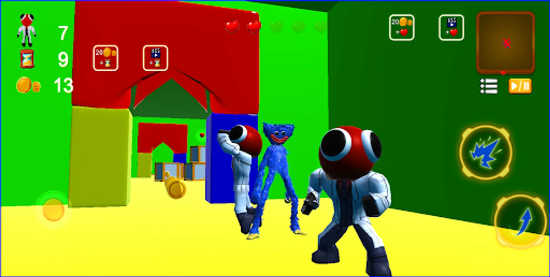 - Collect the gold coins and hearts to survive and escape from the monster rainbow friends