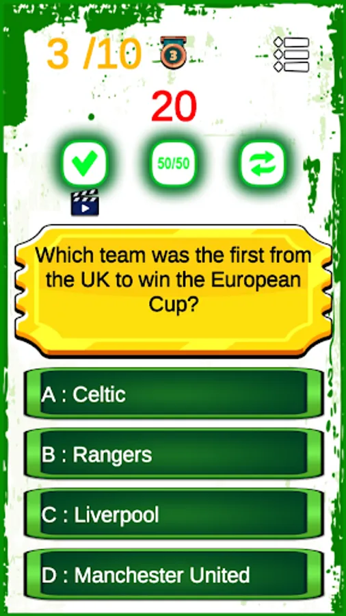 The test consists of 3 difficult levels, the third, then the second, then the first. To go from level to level, you must answer 10 questions,