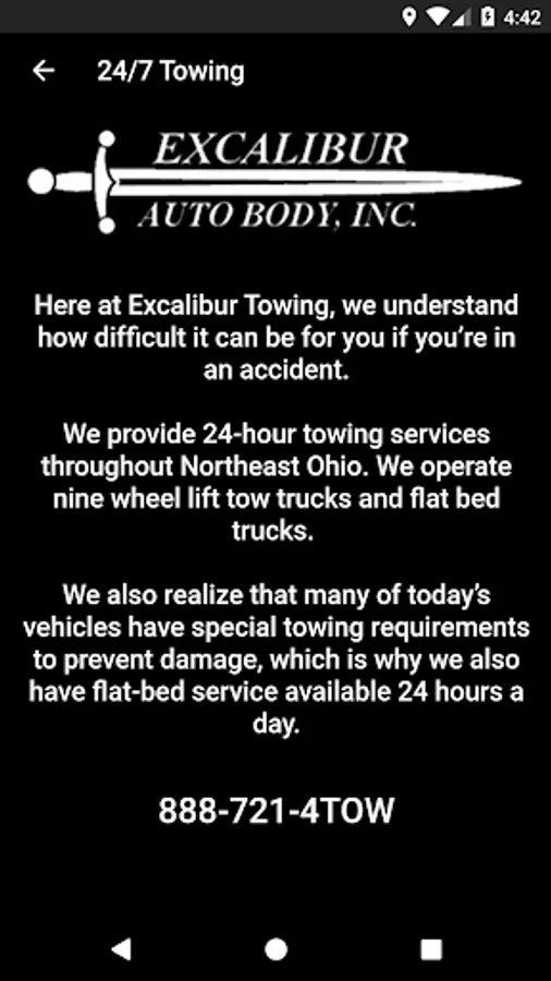 If you’ve just had an accident, give us a call. Excalibur can get your car towed, and provide you with a rental car, all in one call. We take pride in providing towing service for our customers 24 hours a day, seven days a week. Our repair facilities are available six days a week from 8am – 6pm