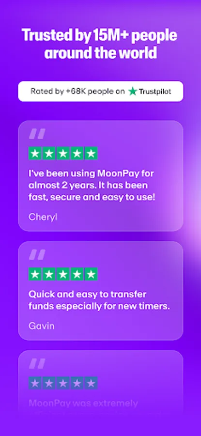 Streamline your crypto experience with the MoonPay app and join millions of people all over the world who purchase crypto with MoonPay.
