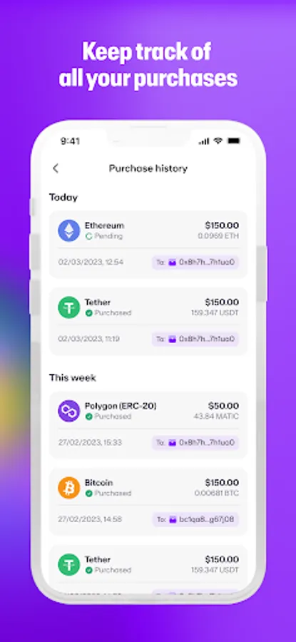 Manage all your wallets in one place with wallet integration and detailed purchase history.