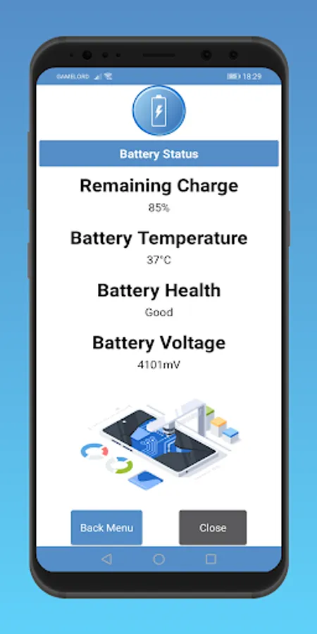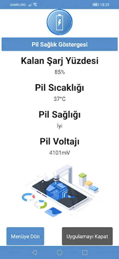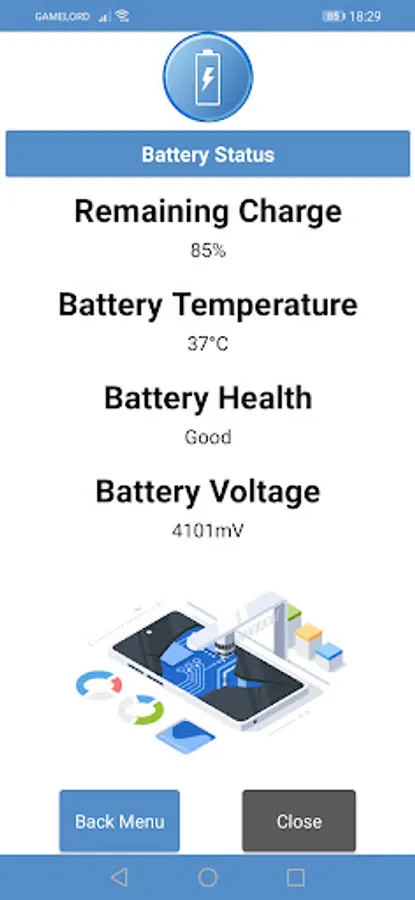 Find out the life and condition of your battery with this practical application, you can find out the remaining percentage of your battery, temperature, life health and voltage status.