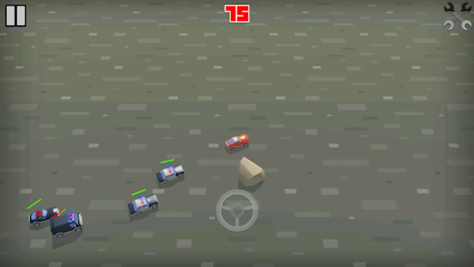Use the steering wheel area on the phone screen with your finger; Avoid the cops by steering right and left without hitting the rocks on the map. By collecting coins around, you can get a better tool from the industry. Collide the police cars with each other while escaping and gain an advantage.