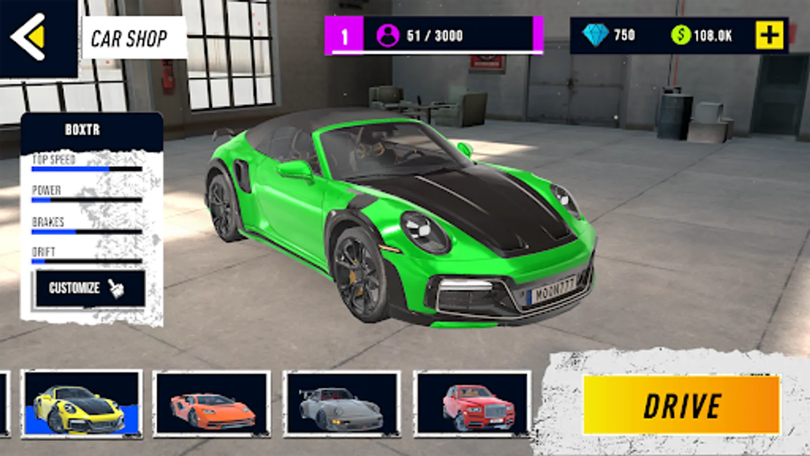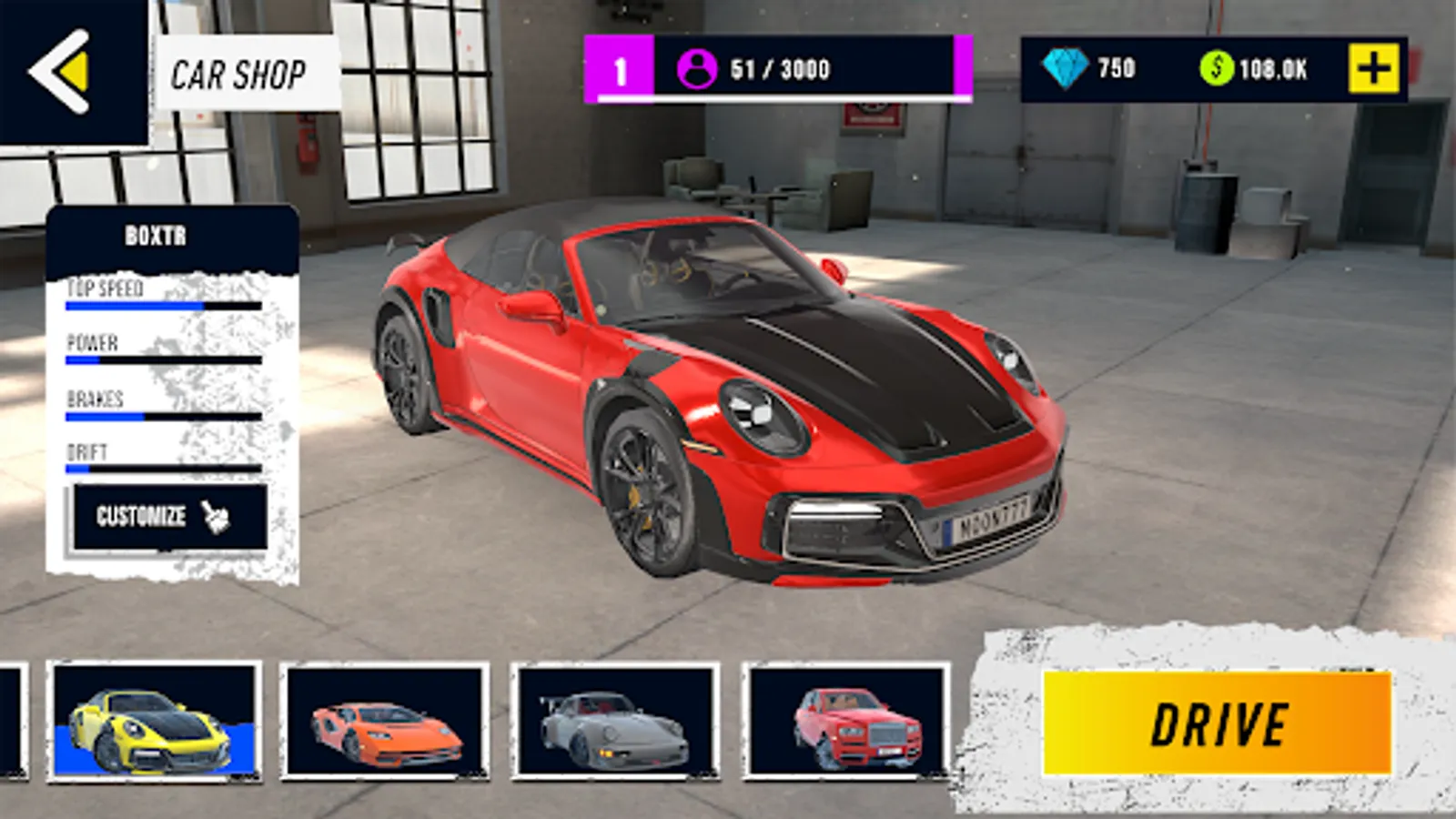 Three. If you are looking for a car racing game that allows you to drive different sports cars with the option to customize and improve the performance of the cars.