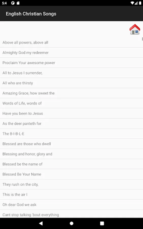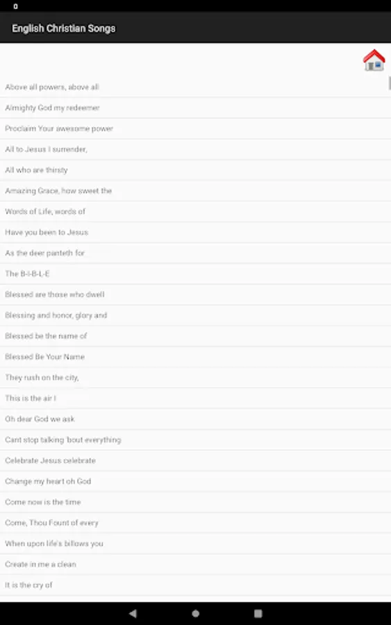English Christian Song Book application is a collection of Christian Song lyrics. It has songs from all Christian denominations.