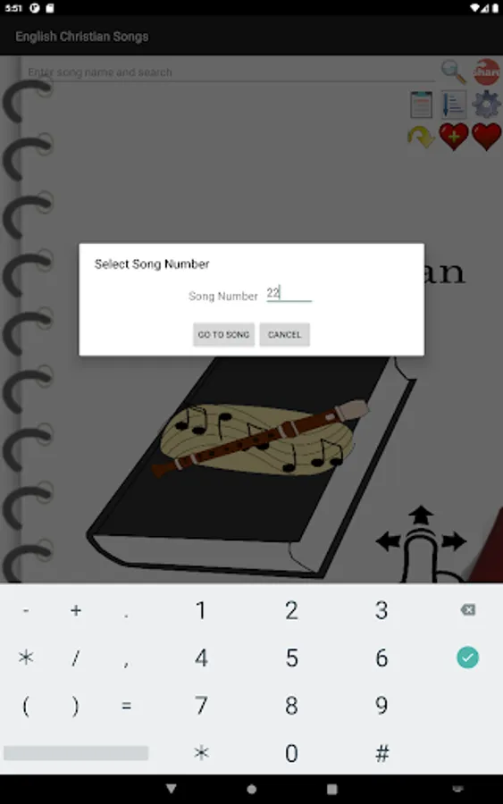3. You can go to any song by entering the song number. So if all your church members has this application you can quickly go to a song by informing the song number like how we use it in books.