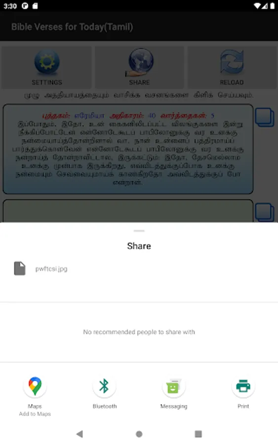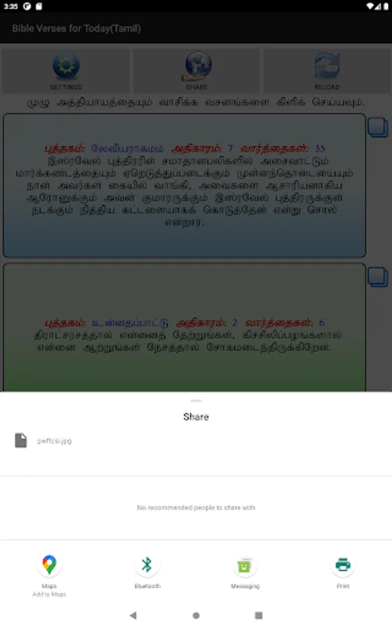 The best part of Bible verse is to share with your friends, family, or on social media. If you like to share click the verses then click the share button and select the Gmail/Facebook etc and then follow the steps in that corresponding application.