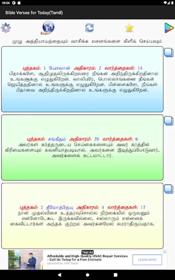 Are you the person who opens the Bible to read God's word? Do you like to read personalized words every day from the whole Bible? Instead of predefined verses for all, this application will give you 3 random bible verses every day you open the application. You can reload to get another set of random Bible verses.