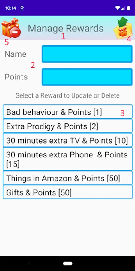 (*) You can add an unlimited number of tasks and rewards with points. You can add/modify/delete a task or reward anytime.