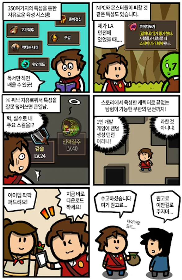 [Finding Dungeons] is an open-world roguelike role-playing game. To preserve the nostalgia of the classic game, we focused on adventure rather than battle, and you can feel as if you are on a real adventure while walking around the world that changes every time, meeting various characters.