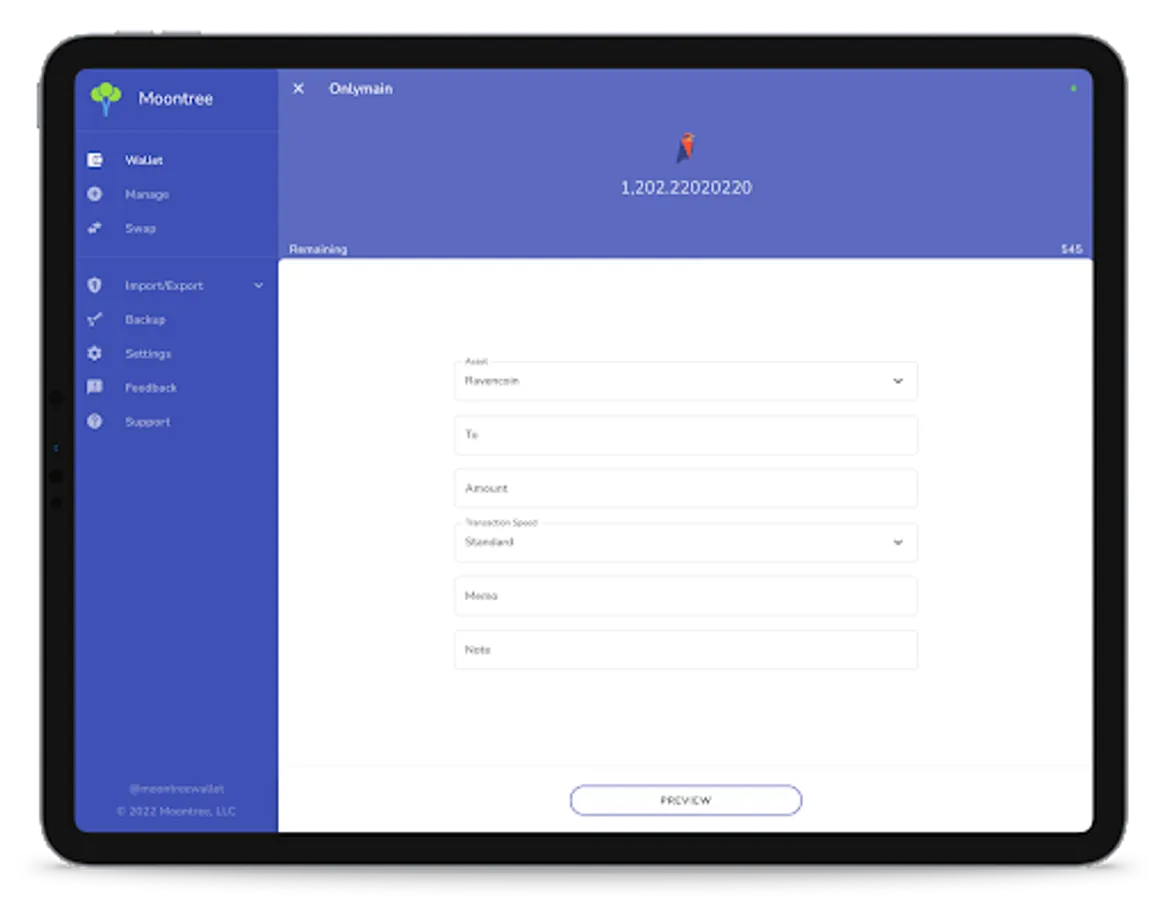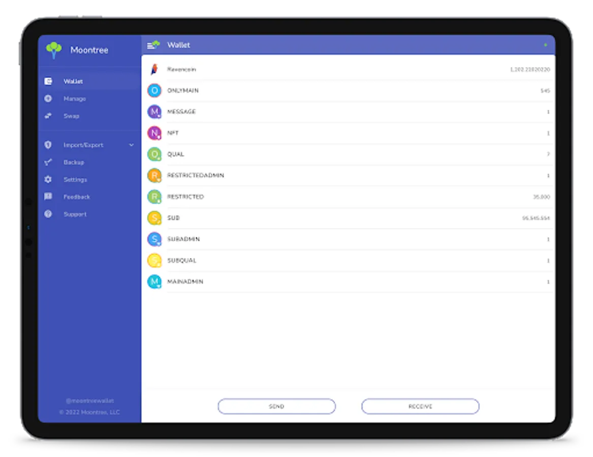 Moontree is the easiest way to hodl, send, receive, create and manage your Ravencoin and Evrmore.