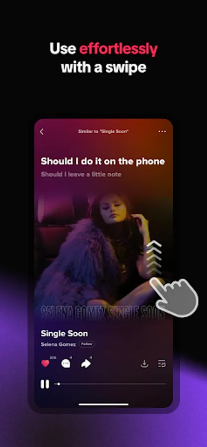 - Keep track of synchronized lyrics to your favorite songs. You express yourself by selecting the verses of your favorite song and sharing it on social media.