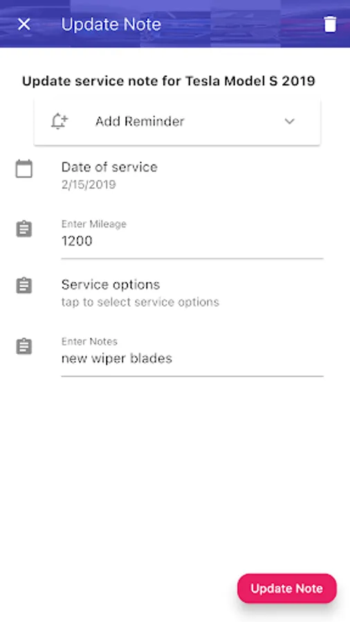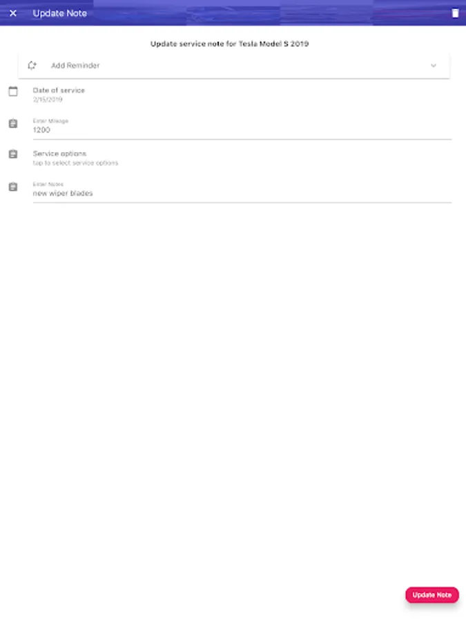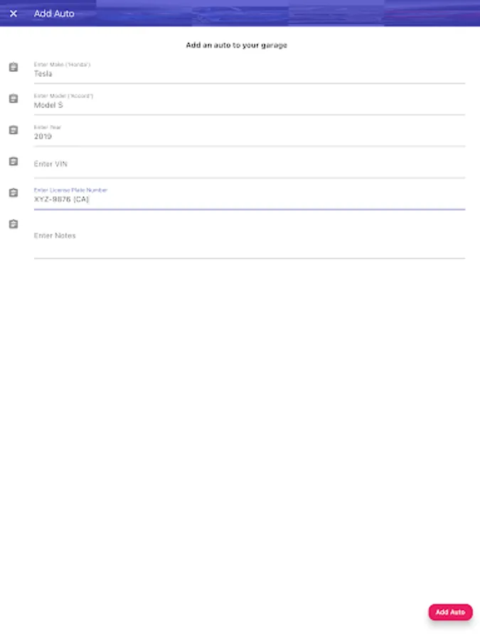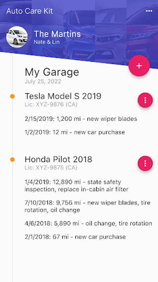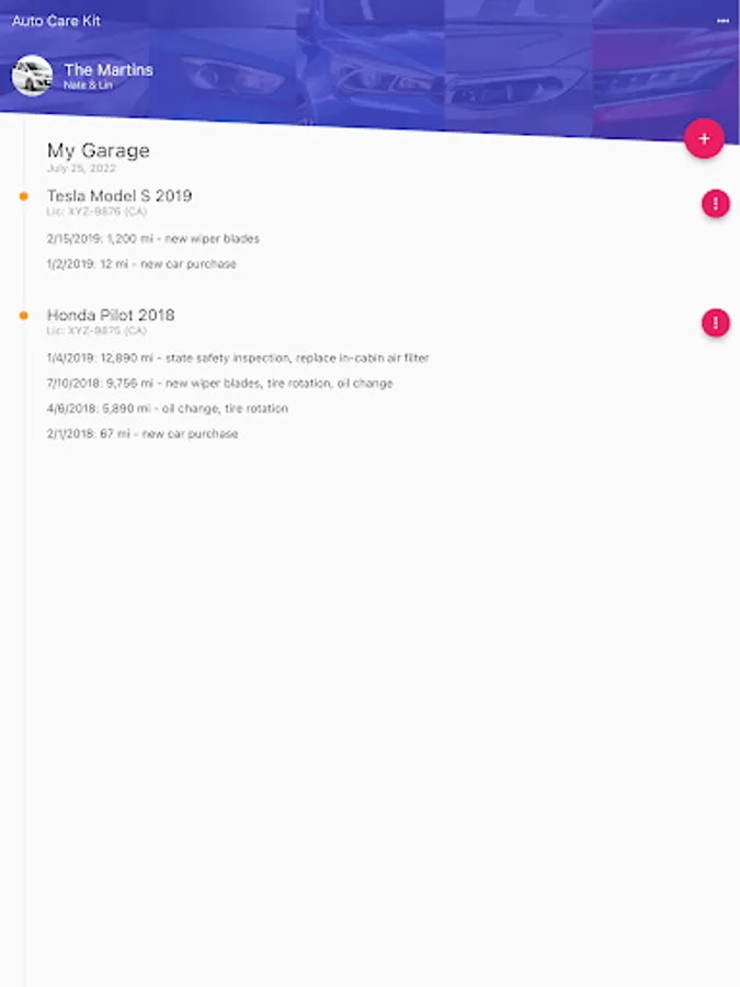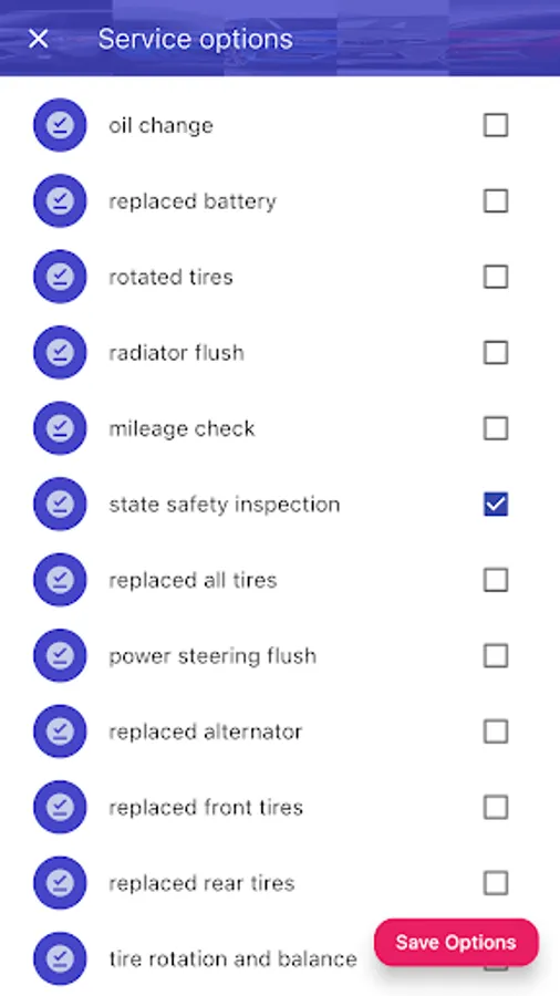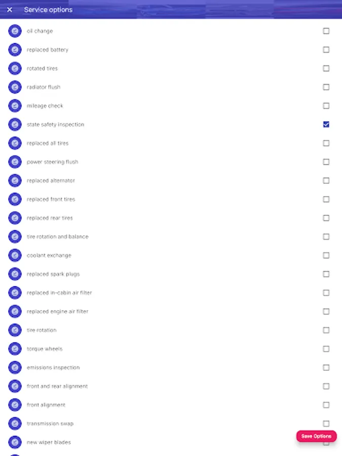 • Track oil changes, tire rotation, battery replacement, regular services, and more