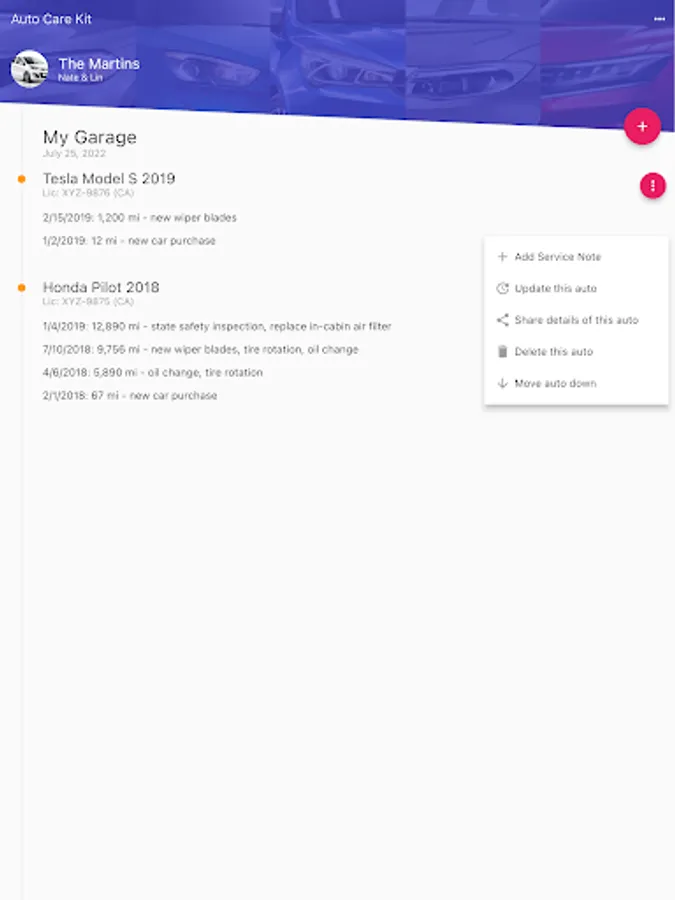 Auto Care Kit is where you take control of your auto maintenance records like oil change, tire rotation, brake replacement, etc. Manage the maintenance services performed on your autos quickly and easily.