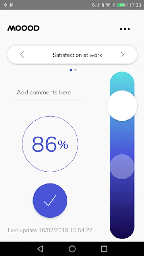 Your employer will find out through Moood that there is something wrong with your workplace. Just enter your mood and mood change every day with a very simple user interface.