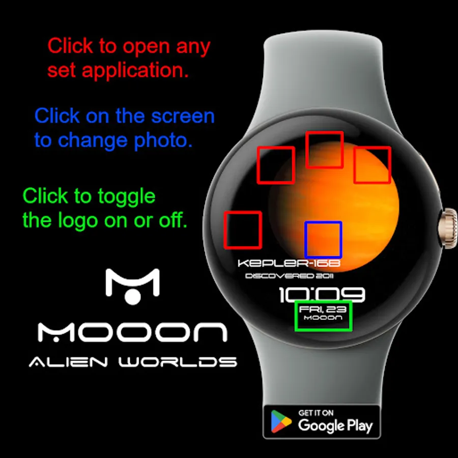 ---Note: If Google Play says "Incompatible device", open the link in a web search engine on your computer or mobile phone and install the watch face from there. ---